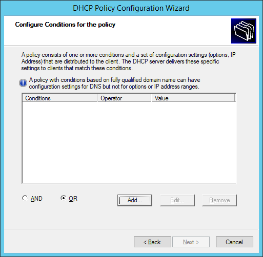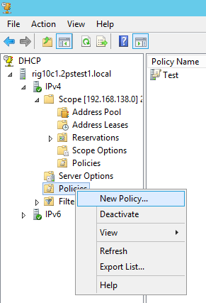 Please note that you can create Policies from the Scope Node as well, they don’t have to be Server wide. The DHCP server evaluates policies sequentially according to an assigned processing order. The DHCP administrator assigns the processing order to the policies. If policies exist at the server and scope levels, the server applies both sets of policies and evaluates the scope policies before the server policies. The processing order for a scope level policy defines the order of evaluation within the scope. If there are no policies defined at the scope level, the policies at the server level apply to the scope.