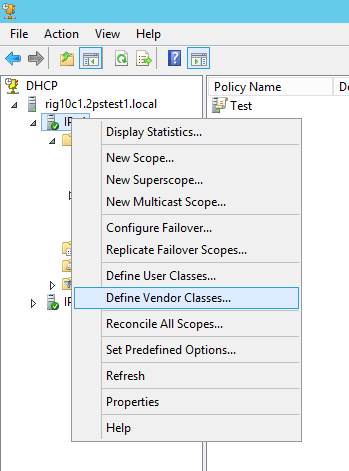 In order to use these new policies, we need to set up a Vendor Class to capture the Option 60 information. Then we will use this option to capture requests from clients that match this Class.