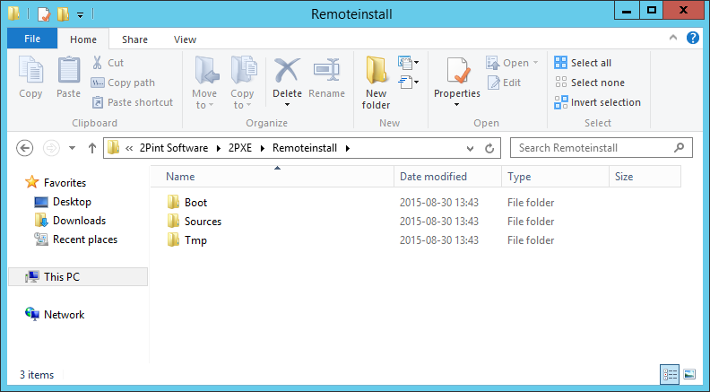 The RemoteInstall directory is created within the 2Pint Software\2PXE \ProgramData folder as per below: