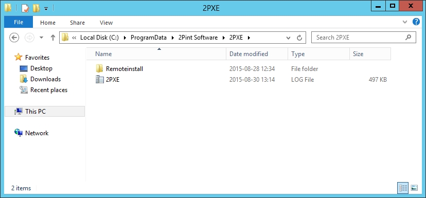 The 2PXE service can be installed to any location, but we recommend it to be installed in the default directory. Once the service is installed, the following files should be present in the installation folder: