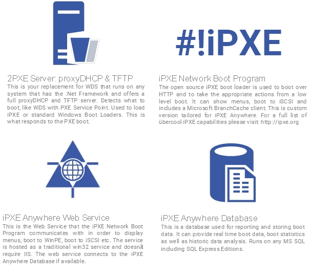This sections gives a little more background on the several major components that make up iPXE Anywhere.