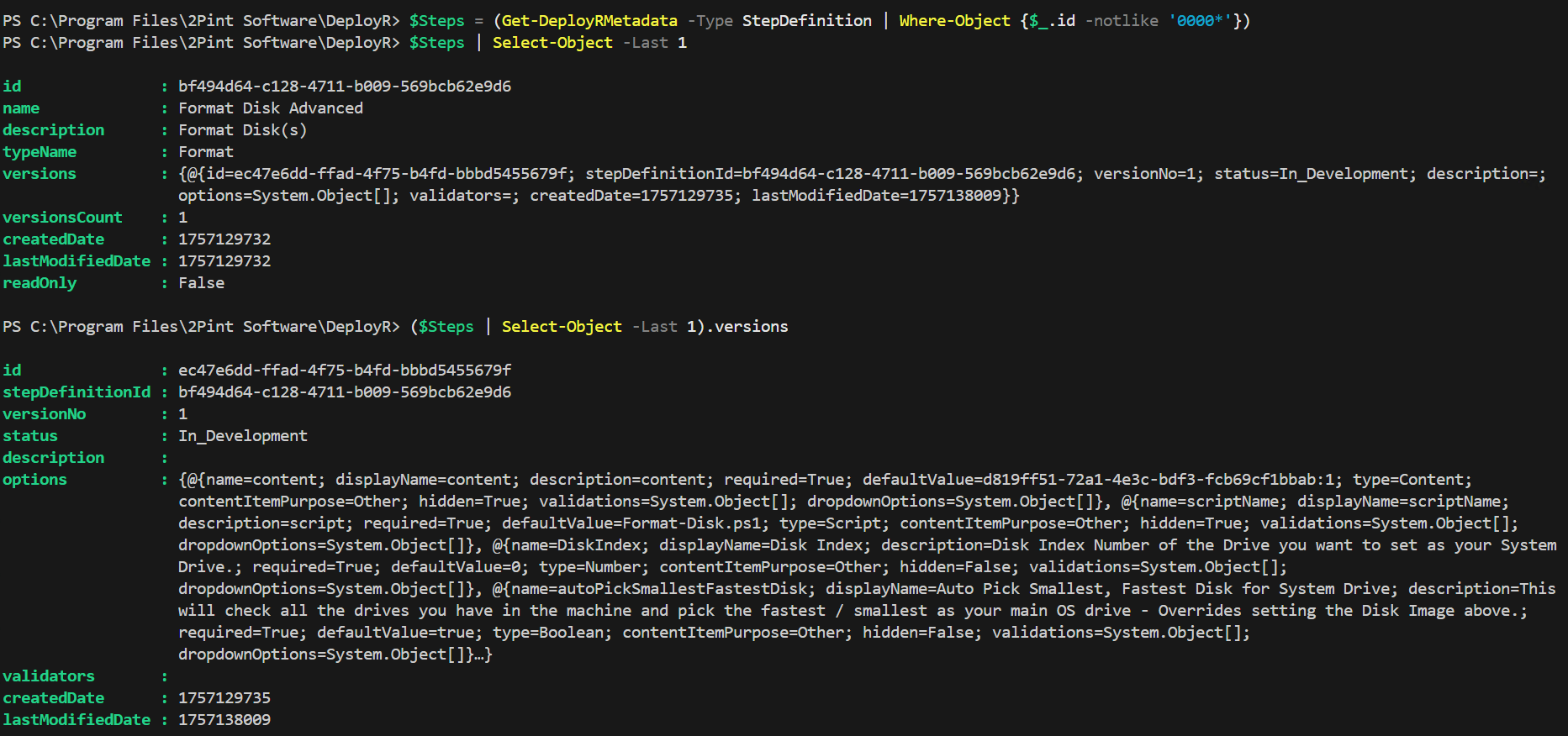 $Steps = (Get-DeployRMetadata -Type StepDefinition | Where-Object {$_.id -notlike '0000*'})