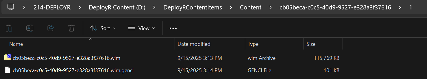 All content items uploaded into DeployR will be converted into a WIM file for improved deployment and P2P.