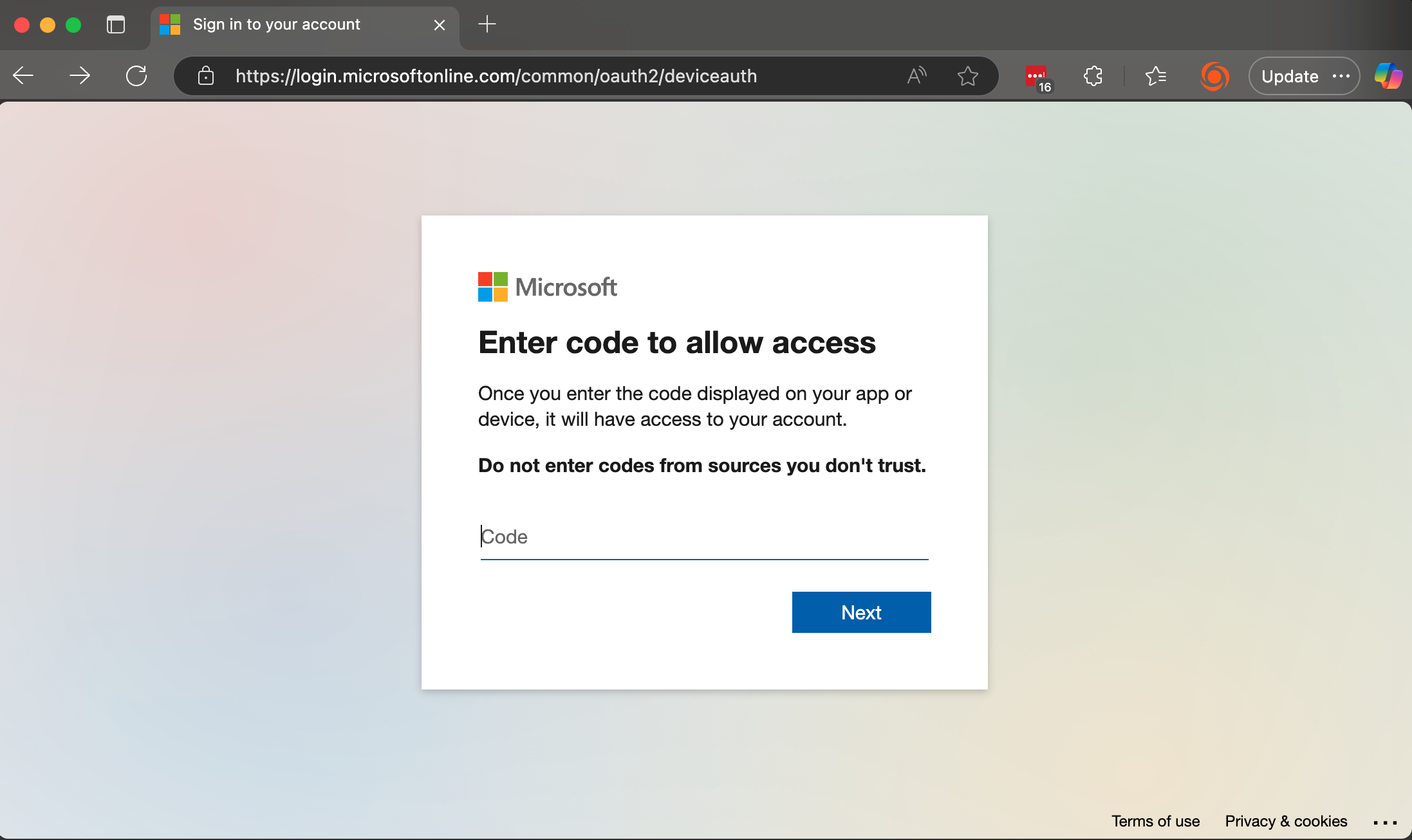 See [the Microsoft documentation](https://learn.microsoft.com/en-us/entra/identity-platform/v2-oauth2-device-code) for more information on this authentication mechanism.