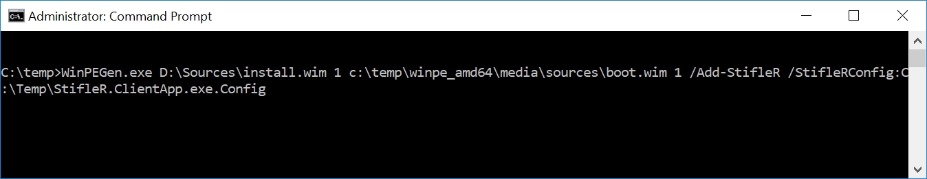 "WinPEGen.exe" "C:\Temp\Windows8Ent\Sources\install.wim" 1 "C:\Temp\boot.wim" 1