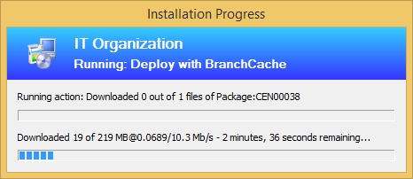 Figure 22 Data and statistics for a package being downloaded. Note that the BranchCache statistics are not available until the download has completed.