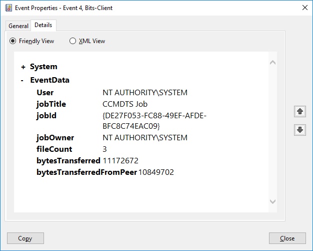 For each package the following information from the BITS job is written to a key underneath the BITS registry key. The name of the value is in the format of the ContentID such as R1101234.