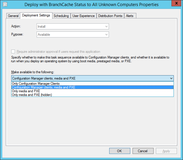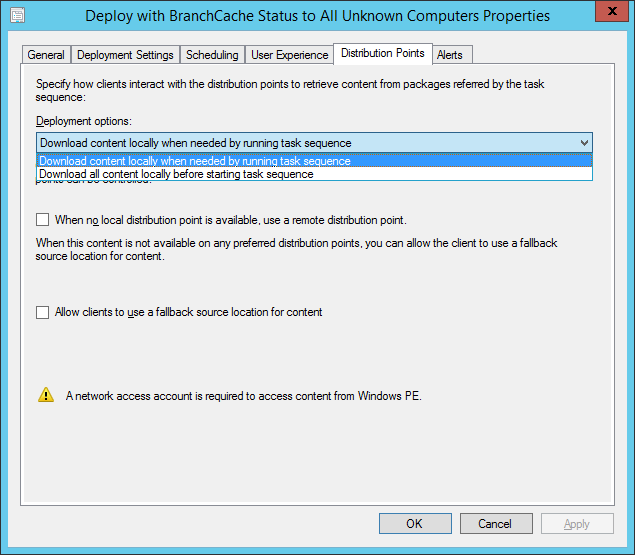 Once you have changed the value (Don’t forget to hit the Apply button before switching tab) you can then go to the Distribution Points tab and change the Deployment options setting.