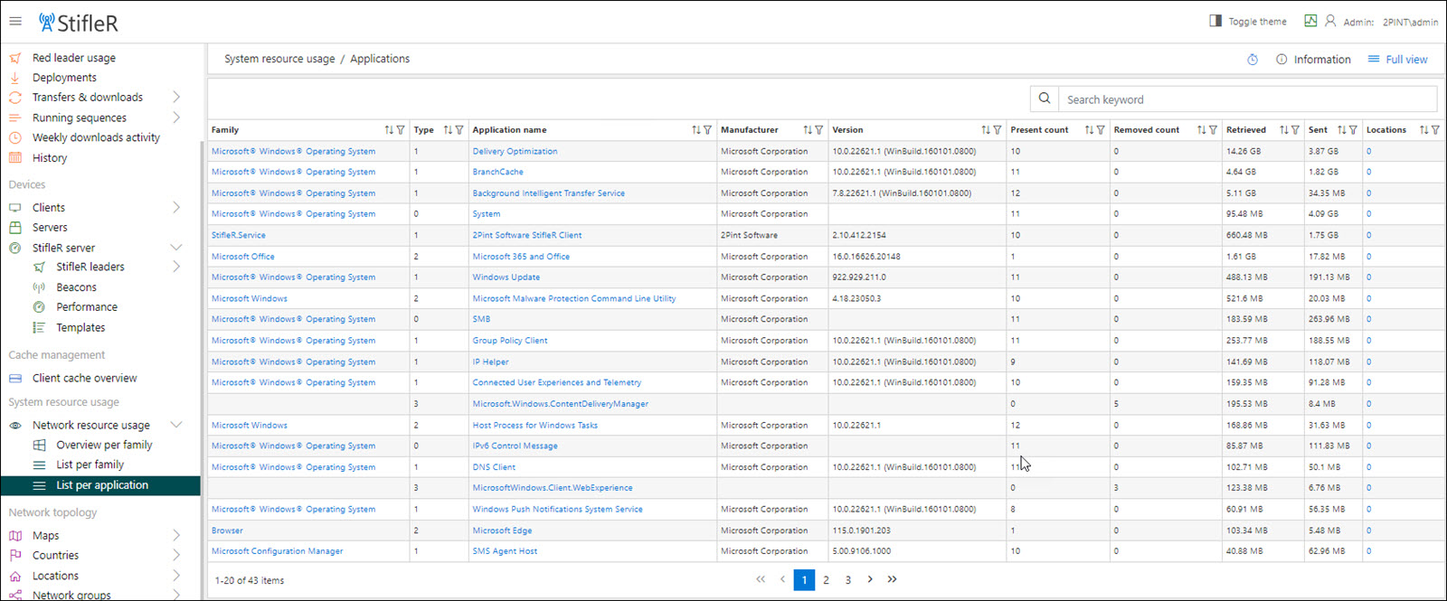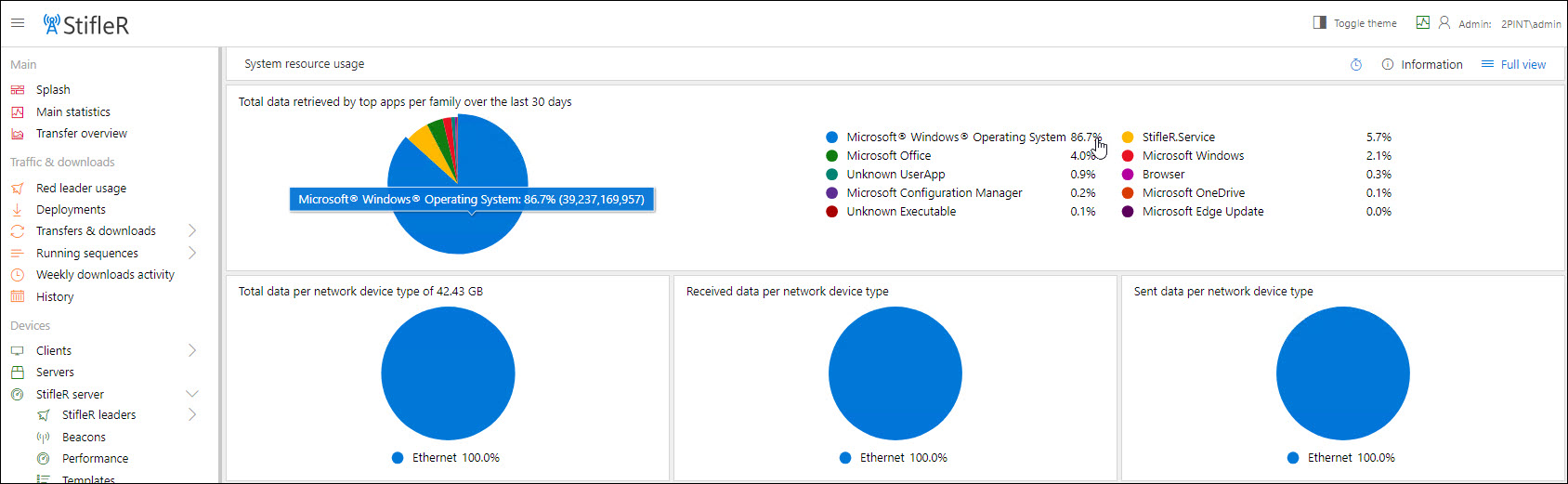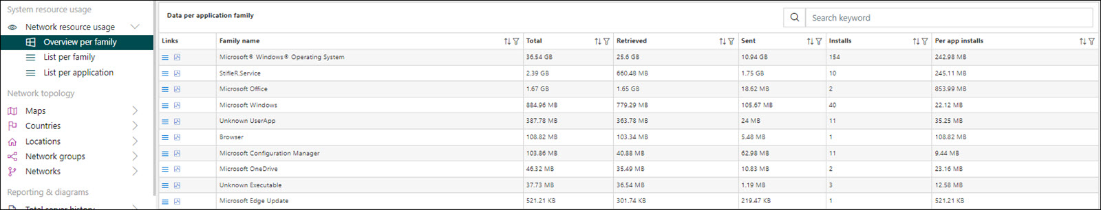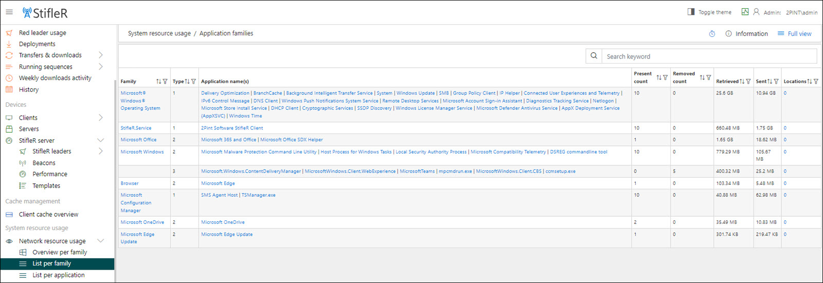 The Overview per family page displays statistics regarding the types or families of content that StifleR clients have downloaded.