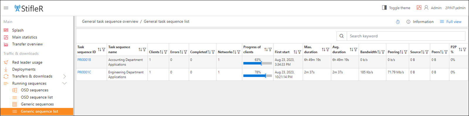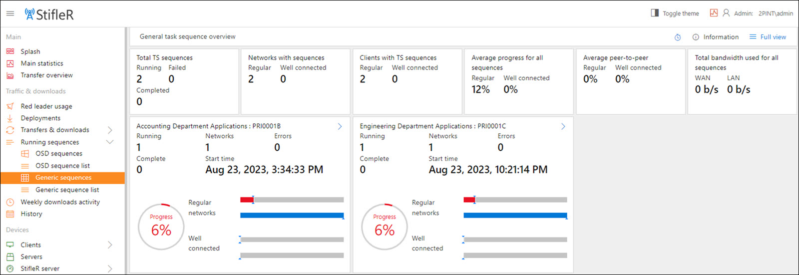 The Generic Sequences page displays the currently running non-OSD task sequences and their progress.