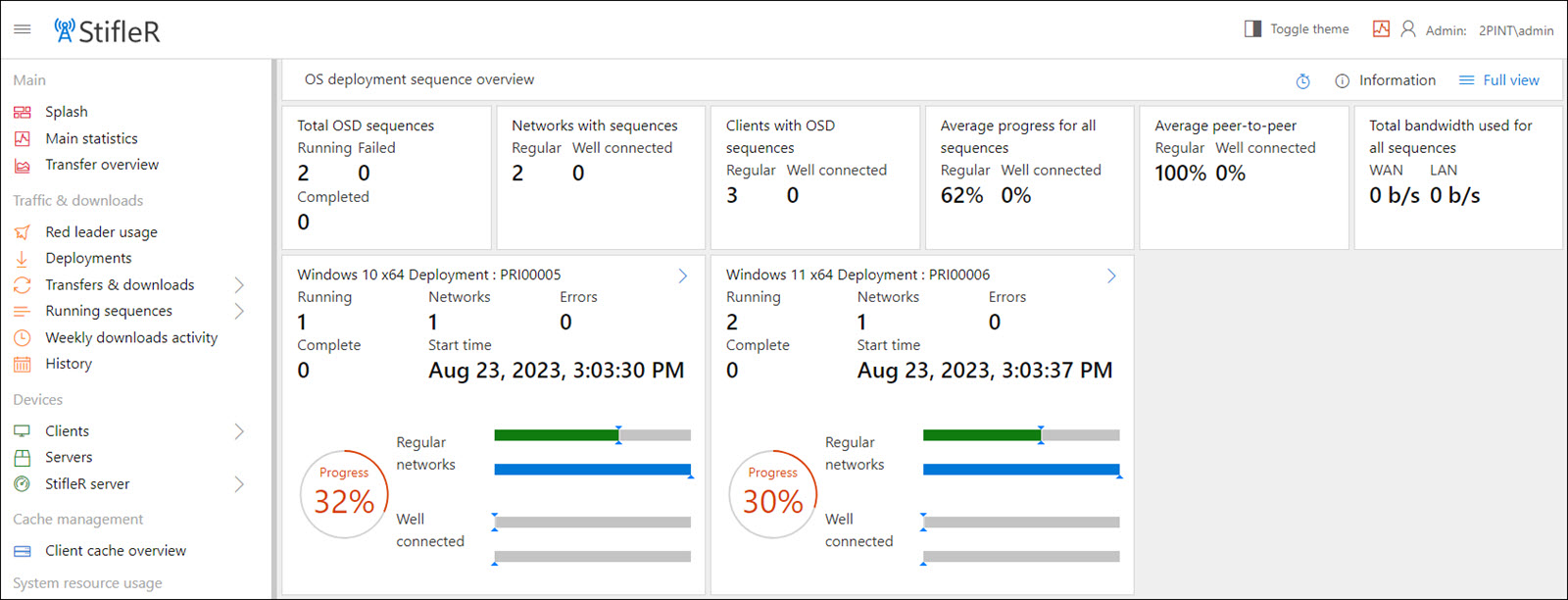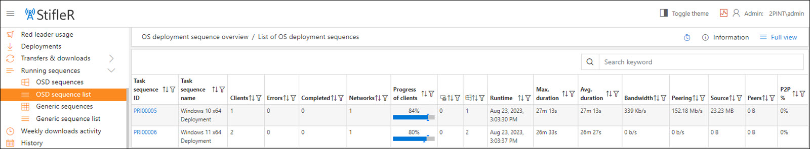 The OSD Sequences page displays the currently running OSD task sequences and their progress.