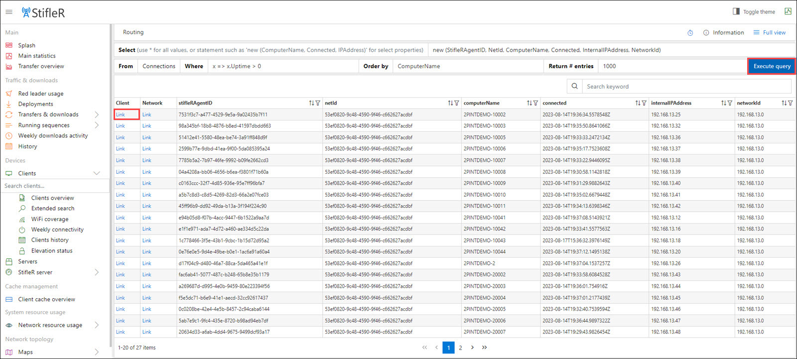 The Clients overview page provides real-time data of the StifleR clients connected to the StifleR server.
