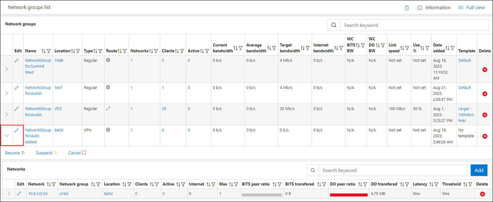 This will display the Networks associated with the location. You can drill down further to display the assigned Networks or select the Edit icon to modify the Network.