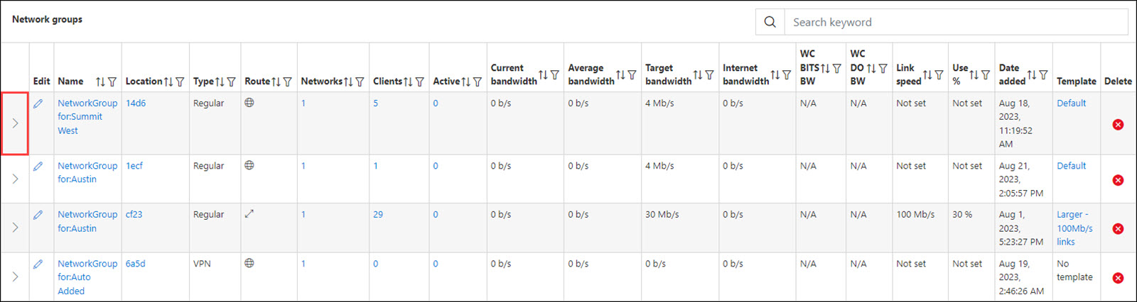 The Network groups list will display all of the network groups. To view the networks assigned to the location, select the arrow next to the Name.